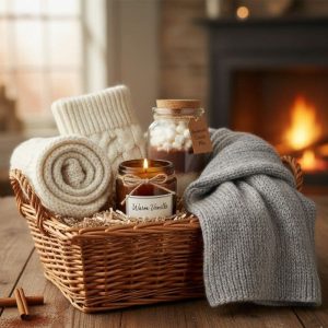 When I want to give something practical, I love arranging a basket of small winter essentials. Instead of buying a pre-made set, I choose items piece by piece so the basket feels thoughtful.