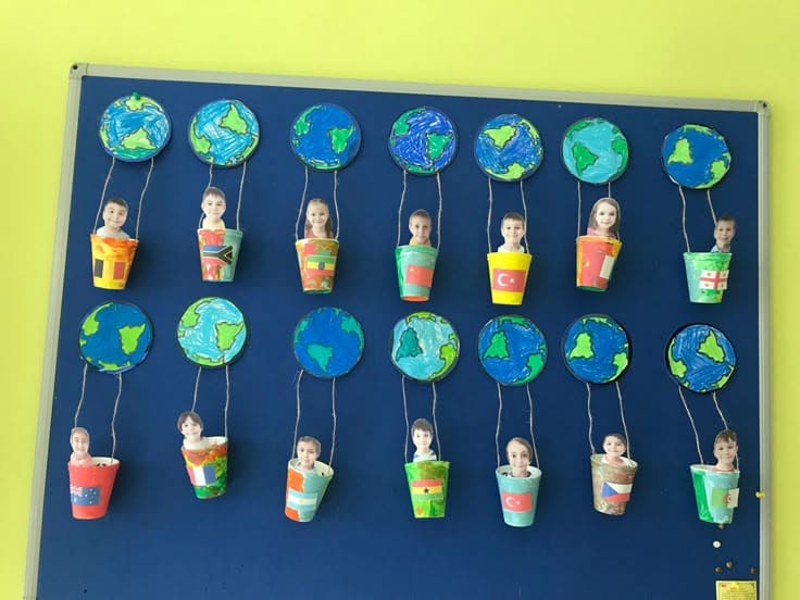 Your kids become little travelers in this heartwarming balloon basket craft! Each Earth is a balloon, and the basket holds a cutout photo of your child peeking out.