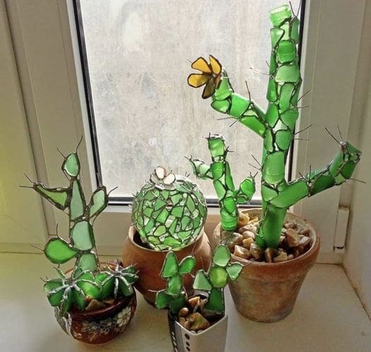 #19. Eco-Friendly Glass Mosaic Cactus Pots
