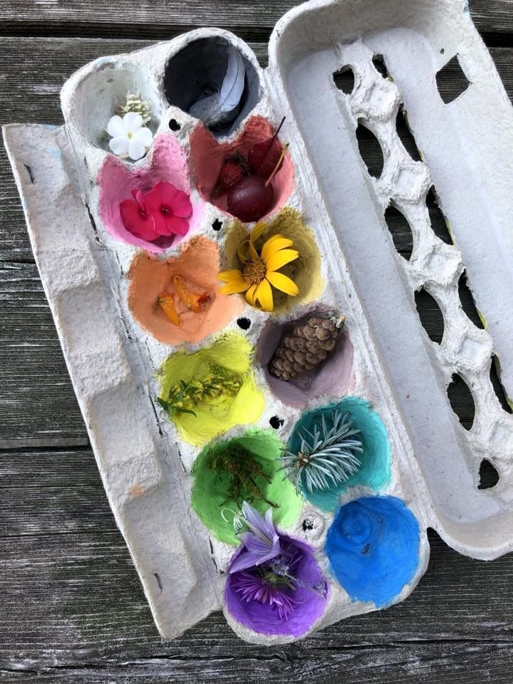 With a bit of paint and a walk outside, this eco-friendly activity turns an egg carton into a rainbow treasure box. Kids get to explore nature, collecting flowers, leaves, seeds, and petals in every color they can find.