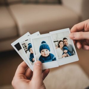 I place the stack of instant photos on the table and sort them carefully. Many of them aren’t perfect — some are slightly blurry, some capture messy moments, and some show us during normal, ordinary days. But these are the moments I want to keep. My child’s tiny smile, sleepy eyes, food-smeared cheeks, walks in the backyard, afternoons on the sofa, and simple family snapshots.