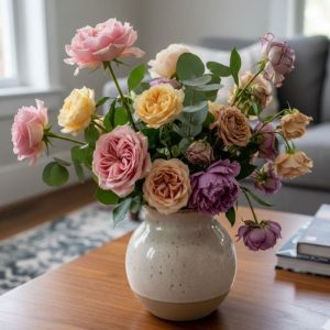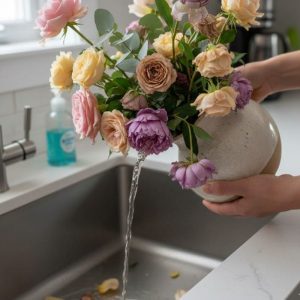 Every two or three days, I take a moment to examine the flowers closely. I gently shake off loose petals, remove any wilted stems, and re-trim the healthy ones. This small refresh makes the whole arrangement feel new again.