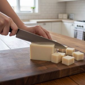 I start by cutting the melt-and-pour base into small cubes so it will melt evenly.