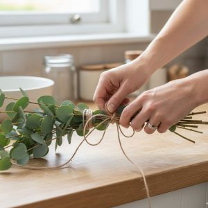 I continue making eucalyptus bunches because they’re simple, natural, and surprisingly comforting. I don’t need to buy candles, sprays, diffusers, or anything expensive. Everything comes from my own backyard, and the only tools I need are scissors and twine.
