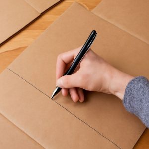 Once I had everything laid out, I drew simple outlines of the walls directly onto the cardboard. The lines weren’t perfectly straight because my baby kept crawling over to see what I was doing, but they were good enough for what I had in mind.