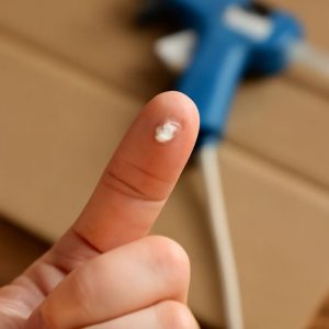 I continued gluing, but the corners kept shifting slightly, so the structure already looked a little crooked. I tried to fix one side, and the glue touched my other hand. Soon both my thumbs were covered with thin plastic-like layers that felt tight every time I moved them.