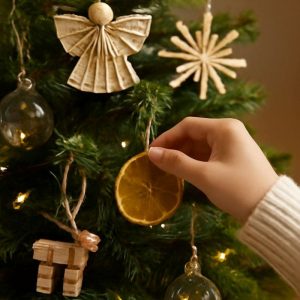 We added twine and hung them on the tree. The warm orange color stood out beautifully against the green branches. They made the room feel comforting like a small reminder that Christmas doesn’t have to come from a store to feel special.