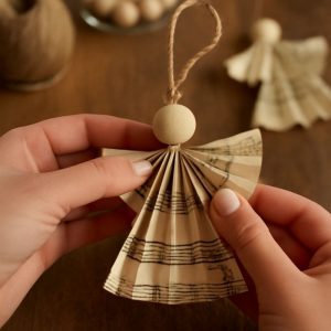 I had an old music sheet tucked in a drawer from years ago. The edges had softened, and there were small creases from being folded again and again. Instead of letting it sit untouched, I decided to turn it into an angel ornament.