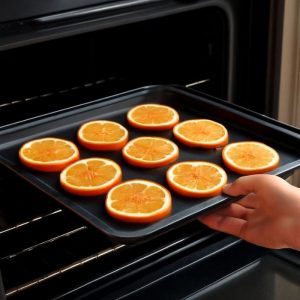 My baby sat on the kitchen floor with a mixing bowl and a wooden spoon, hitting the bowl gently while watching me. The smell of fresh oranges filled the kitchen, and some juice dripped onto the cutting board. I placed the slices on a baking tray and dried them slowly in the oven.