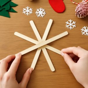 Next, we arranged a few sticks into star shapes and small snowflakes. My baby kept placing their hand over mine, which made some shapes a little crooked, but I didn’t fix them too much.