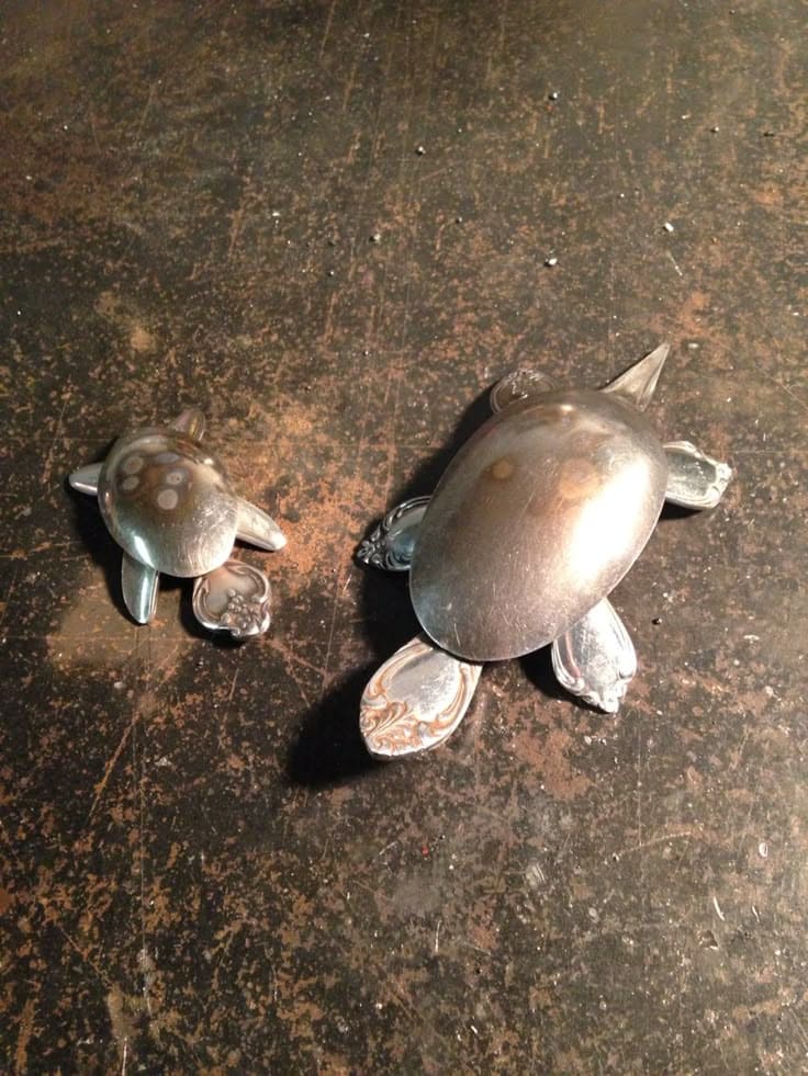 With rounded bellies and delicate spoon-flipper details, these upcycled turtles are pure delight. Their sleek silver bodies give off a soft metallic shimmer that brings them to life.