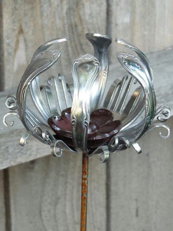 These recycled utensil flowers are like industrial blooms, elegant, unexpected, and full of shine. Imagine an entire garden of these standing proud on your patio.