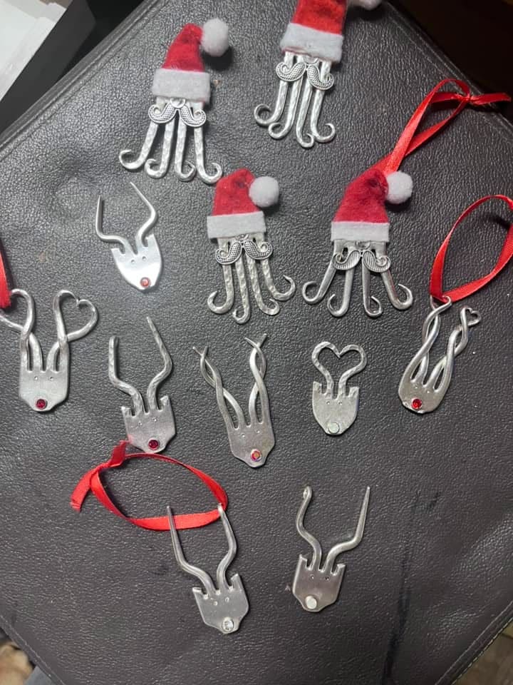 On any holiday tree, these recycled fork ornaments will catch every eye. Some wear Santa hats, others curl into hearts or waves, but each one is a happy little sea creature with personality.