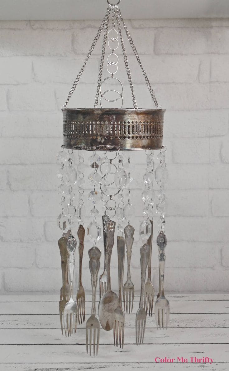 This creative piece takes the charm of old cutlery and pairs it with crystal beads for a wind chime that sounds as magical as it looks.
