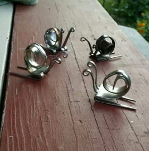 Kids and grownups alike will smile at these sweet little fork snails. Their curly antennae and curled “shells” bring a touch of playful charm to garden beds or porch railings.